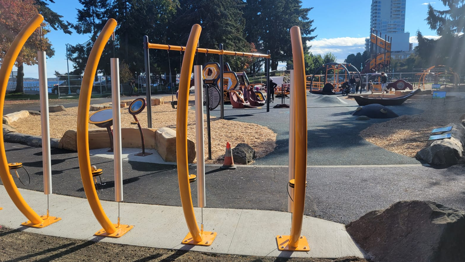 Included are several climbing structures, musical instruments, tactile play areas and a custom-designed canoe carved by Snuneymuxw artist Noel Brown.