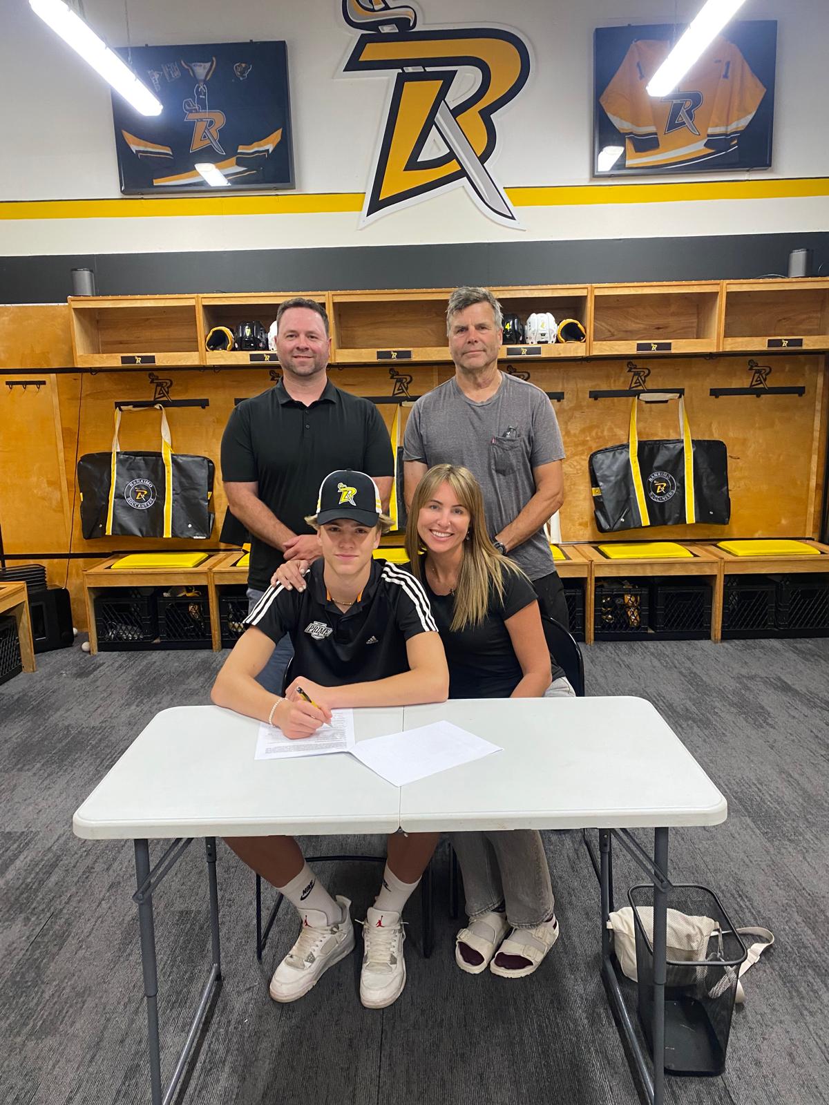 Needham joined by family members and Bucs head coach Tyler Gow. (Nanaimo Buccaneers)While he’s slated to be the youngest player on the team, Needham has size on his side, standing 6’2”, 175 pounds.