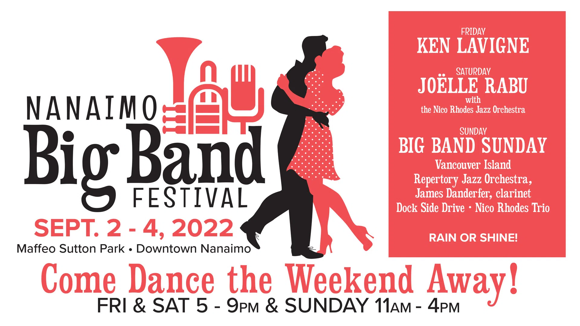The 3-Day Nanaimo Big Band Festival kicks off on Labour Day weekend Sept. 2-4 with 3 days of fabulous Big Band sounds in Maffeo Sutton Park on beautiful Nanaimo Harbour on Vancouver Island. Come Dance the Weekend Away… listen to your favourite songs from the Big Band Era of great music. Headliners: Ken Lavigne, Joelle Rabu, Vancouver Island Repertory Jazz Orchestra with James Danderfer, Solo Clarinet; plus opening acts on all 3 days!