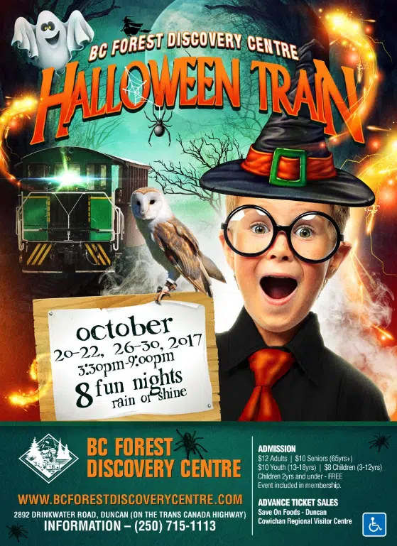 Rain or shine, the train will be running from Friday, October 20th to Sunday, October 22nd and then Thursday, October 26th until Monday, October 30th, times starting from 3:30 to 9 p.m.